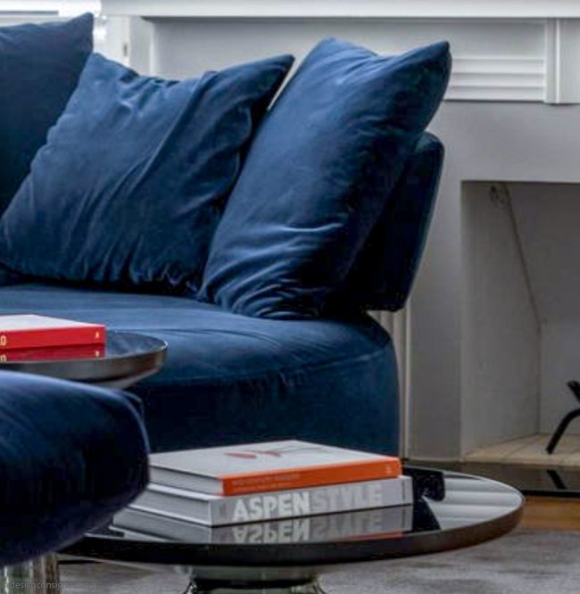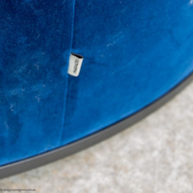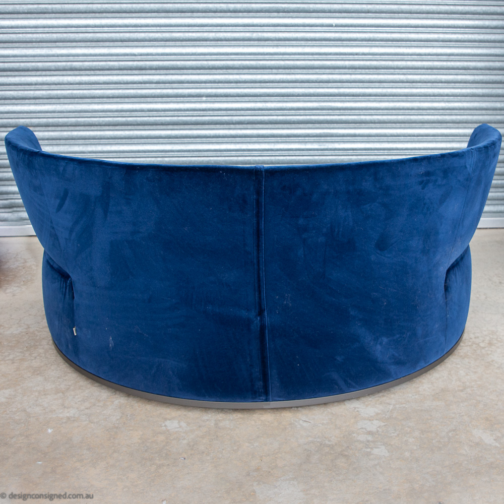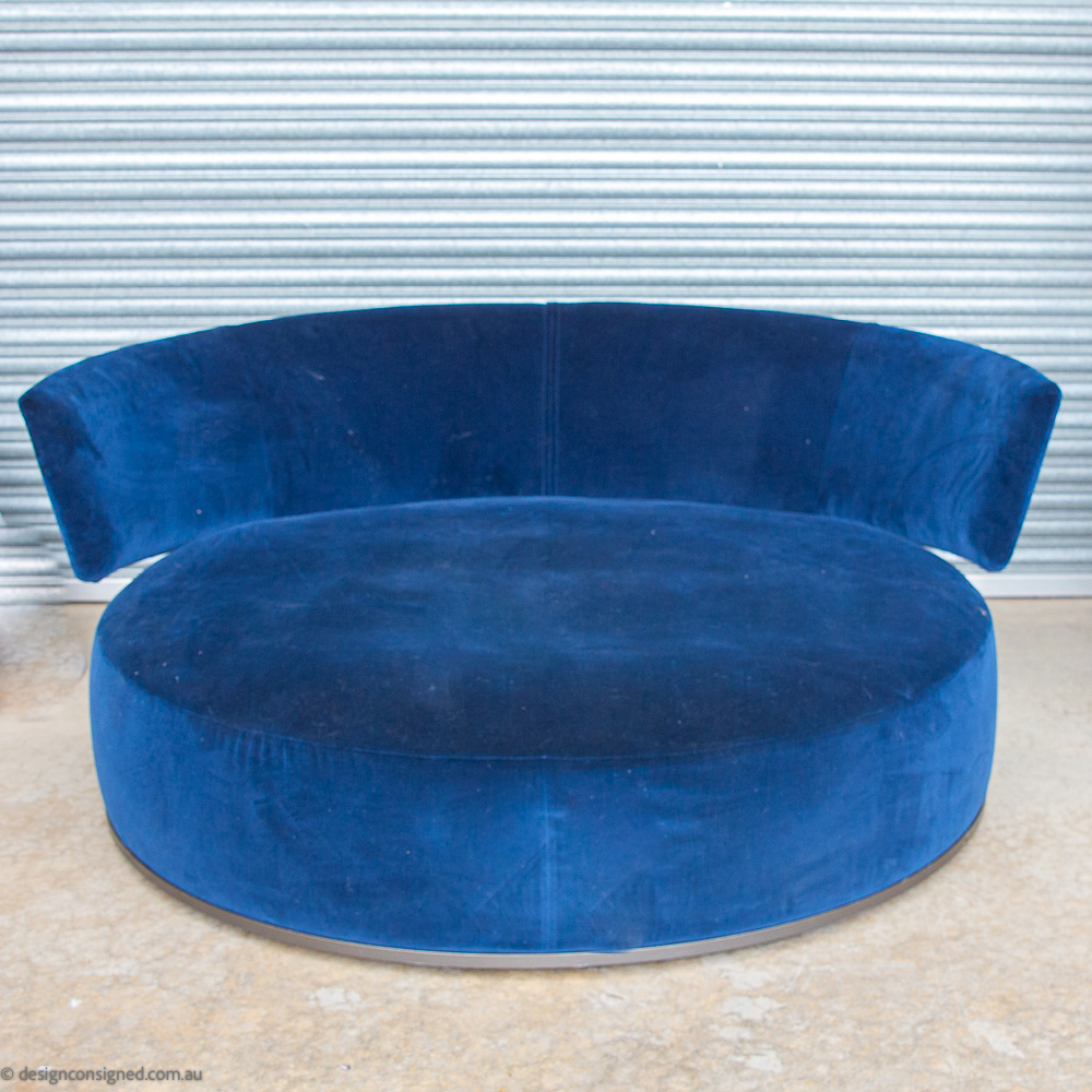 Design Consigned Stylist A circular mid-room highlight piece in sumptuous royal blue velvet.