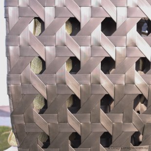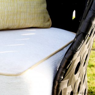 Fabrication Durable aluminium frame with powdercoat finish. High tech sturdy polyethylene woven ribbons in col: bronzed charcoal. Polyurethane inner outdoor seat cushion in fabric Agate col: 100 with piping detail and coordinating back cushions. *Covers removable and reorderable.