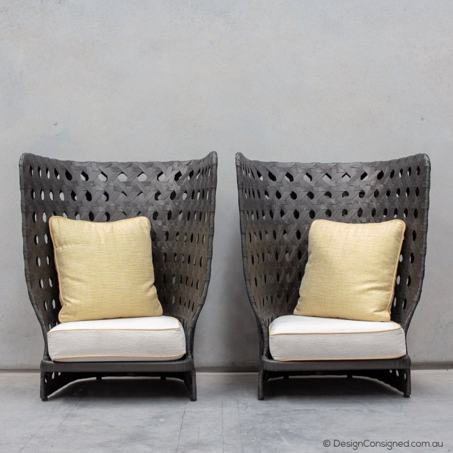 Pair of high back Canasta outdoor lounge chairs designed by Patricia Urquiola for B&B Italia. Now SOLD
