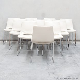 ME-48 Metropolitan dining chairs in ivory leather by American Designer Jeffrey Bernett for B&BItalia. Bernett was one of the original designers for B&B Italia and helped introduce the brand to the American market. Set of 10.