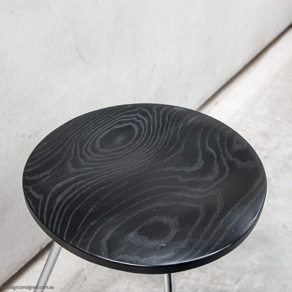 Fabrication Ebonised solid beechwood with visible wood grain. Chrome tubular steel legs. black rubber ferrules.