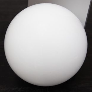 Fabrication Opal blown glass diffuser. Anodised aluminium support in graphite finish.