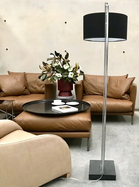 Design Consigned Stylist These wonderfully wide Gentry lounge chairs are in ultra thick buttery soft caramel leather. Style side by side with a statement table / lamp in the divide. The matching ottoman can be useful daily or ready on standby as extra seating, meantime topped with a tray piled with design books (see image). Style with our pair of Moroso Gentry charcoal two seater sofas (see below) to seat six in ‘gentrified comfort’.
