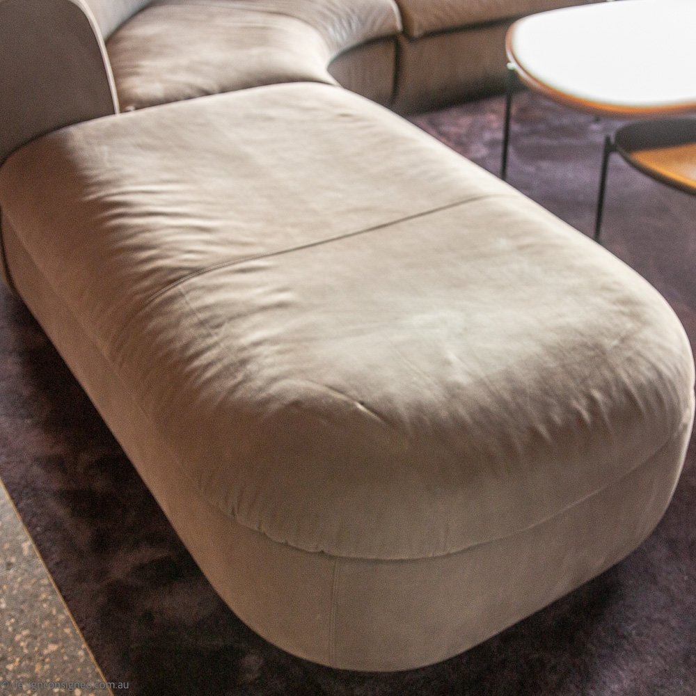 Piaf sofa designed in 2019 by Baxter Made in Italy. Three elements in soft nubuck leather. Seats 4, or more !