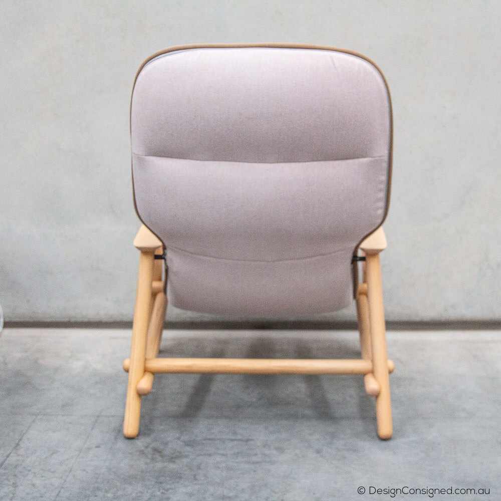 Lilo is a casual lounge chair with a turned timber frame and quilted seat pad resembling a lilo.
