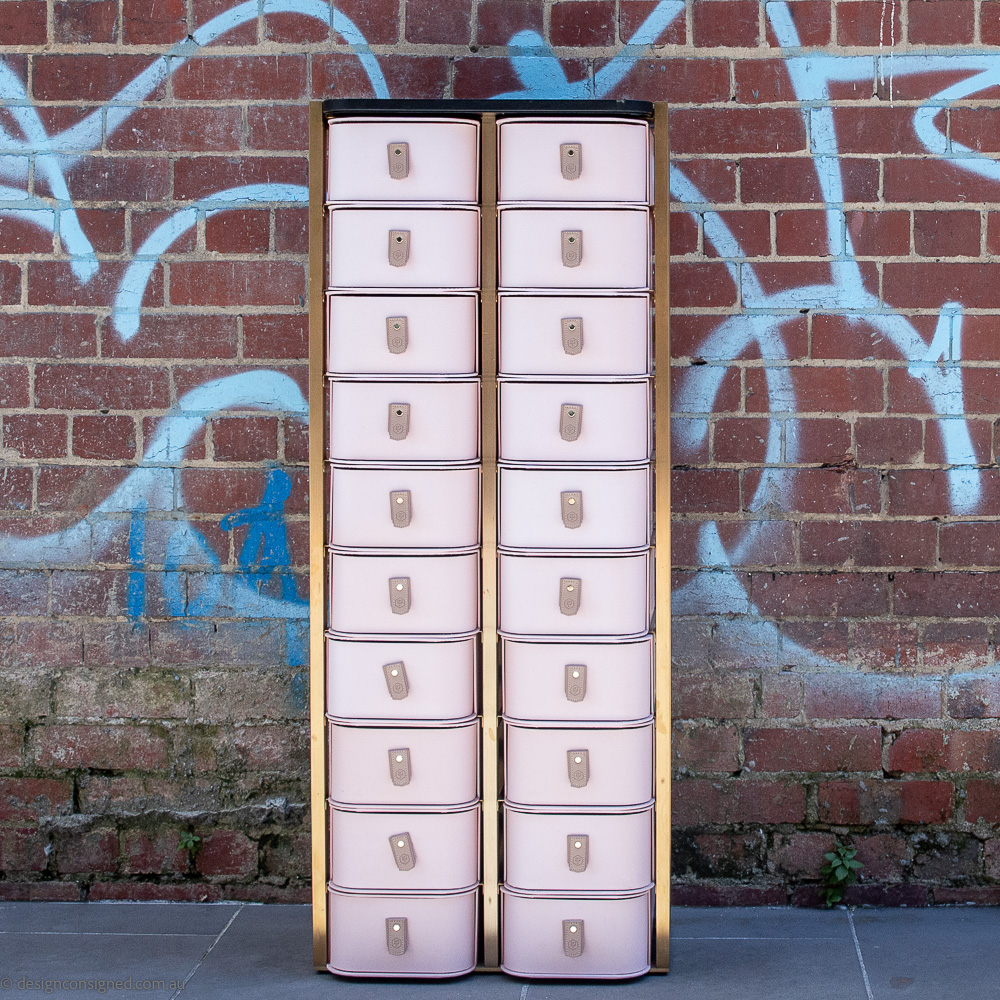 1 x New York stand brass with 20 Milan boxes in Rose H130cm D34cm W52cm
