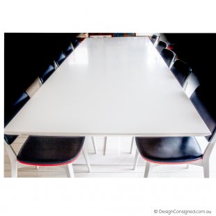 DC Stylist A statement table which typifies the clean MAP aesthetic. Enjoy the existing top indoors or customise with your own stone, glass or timber alternative adding the potential for outdoor use. Design Consigned can suggest and quote options for this. Also suitable for commercial application.